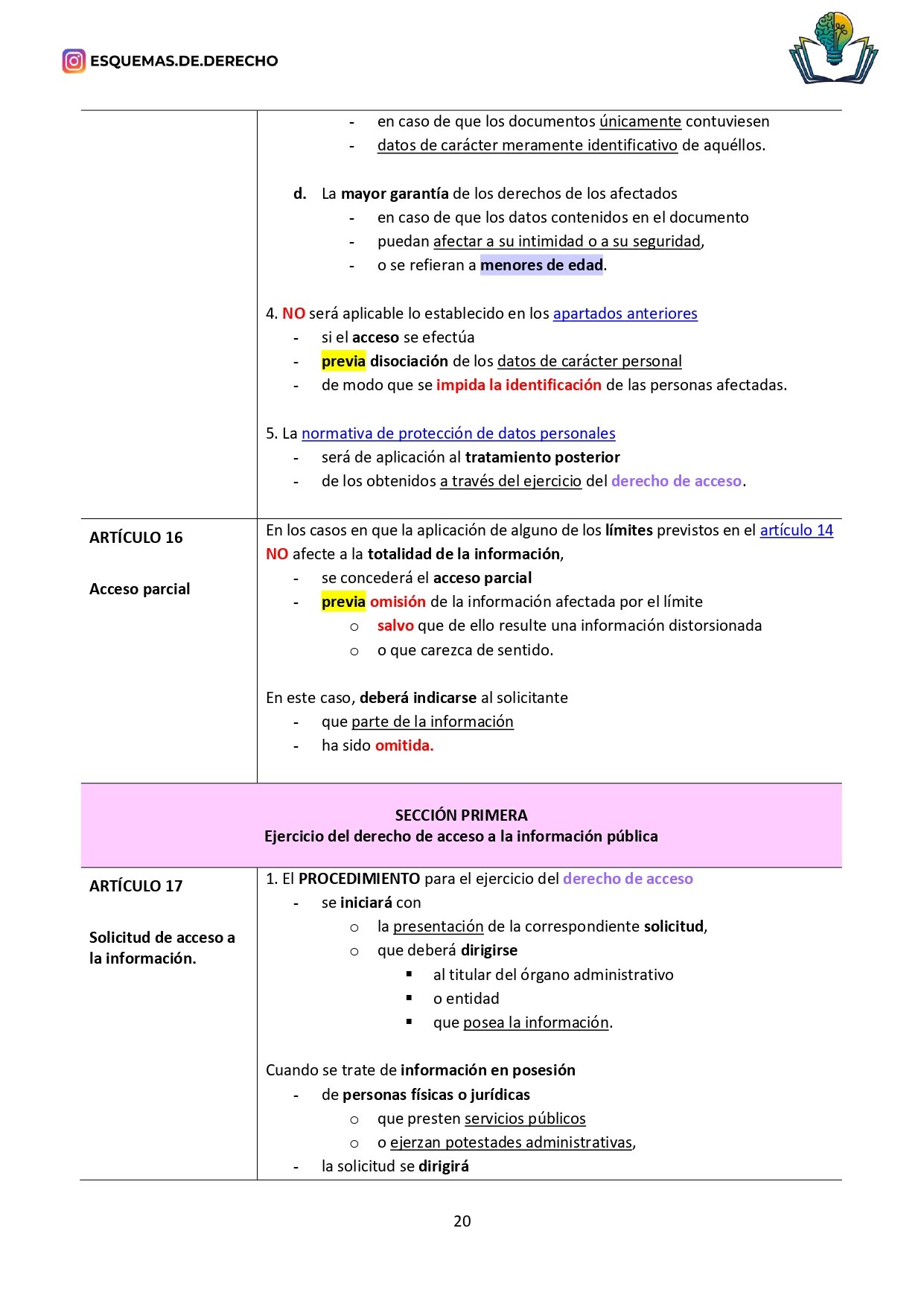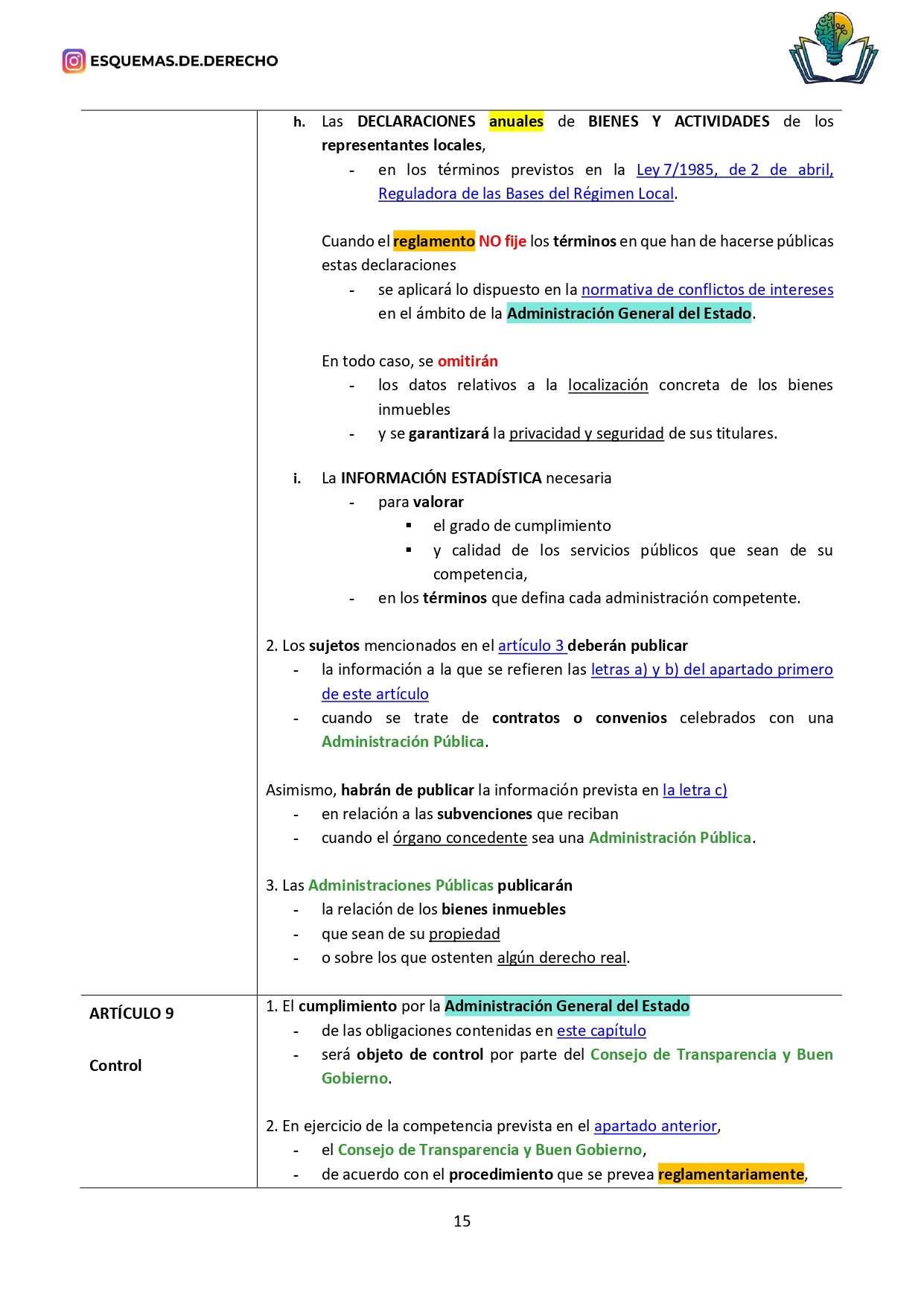 La Ley 19/2013, de 9 de diciembre, de transparencia, acceso a la información pública y buen gobierno, de Esquemas de Derecho, es una ley preparada específicamente para opositores y estudiantes, y es desarrollada por profesores de oposiciones.