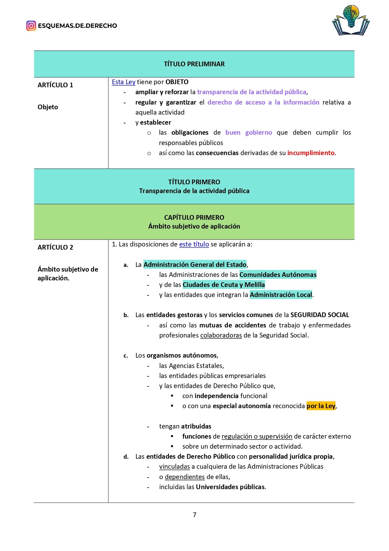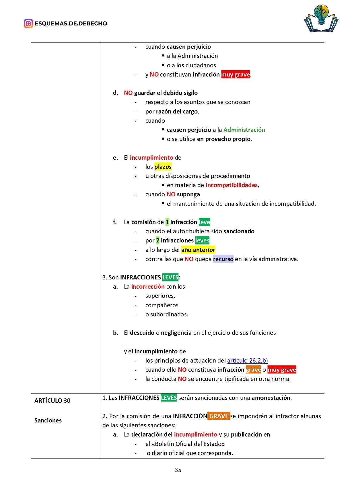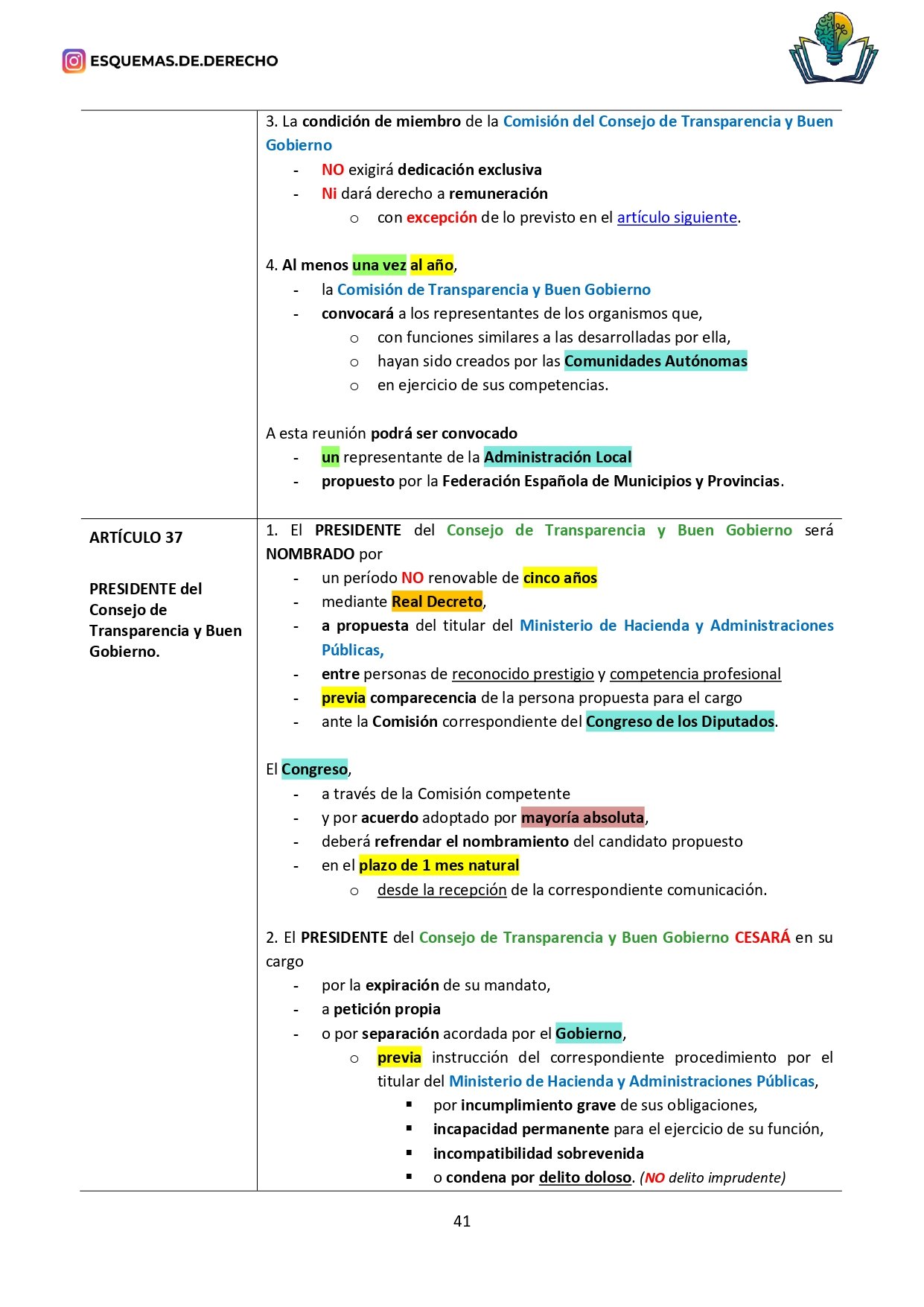 - Revisión Rápida: Facilita las sesiones de repaso, permitiendo una revisión rápida de los temas más importantes antes de los exámenes, o de los datos que deben retenerse a corto plazo, como los plazos o mayorías, sólo tendrás que buscar en la ley los subrayados de color amarillo, naranja o verde.