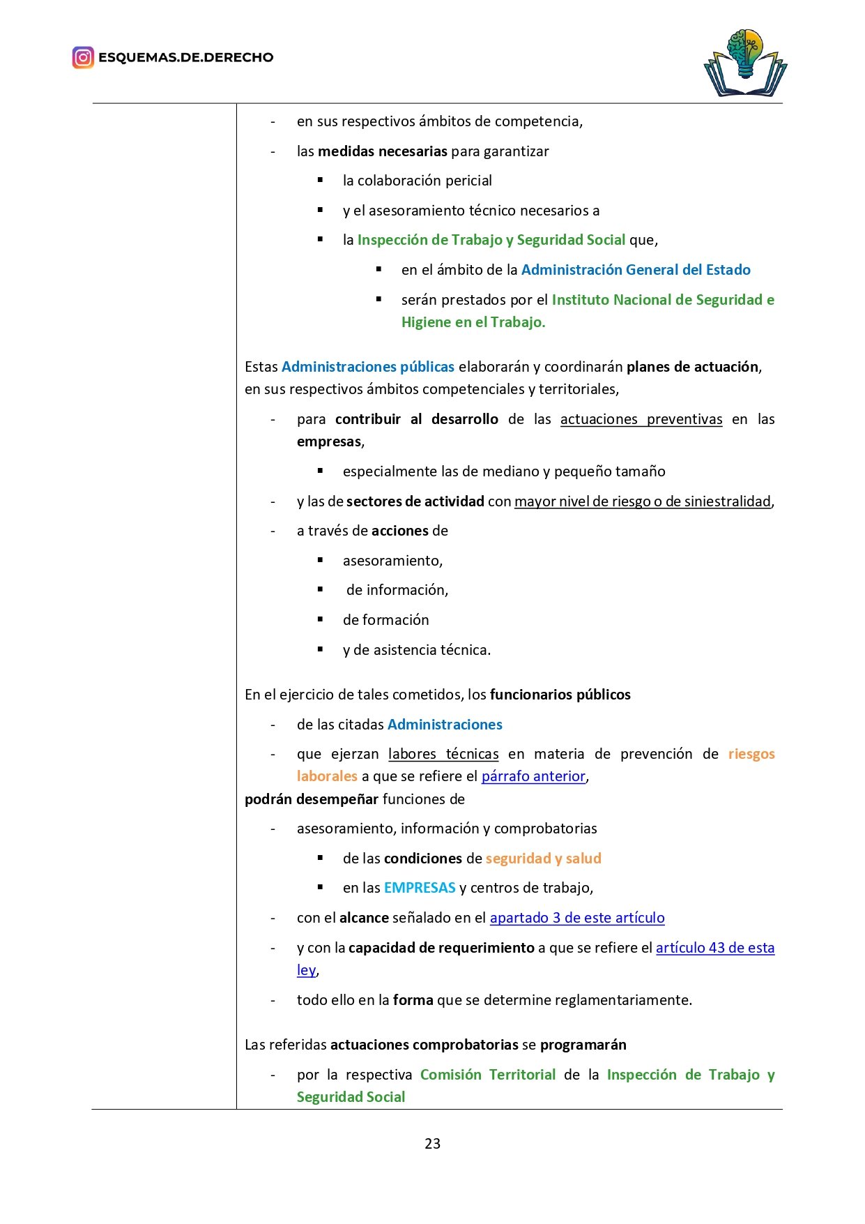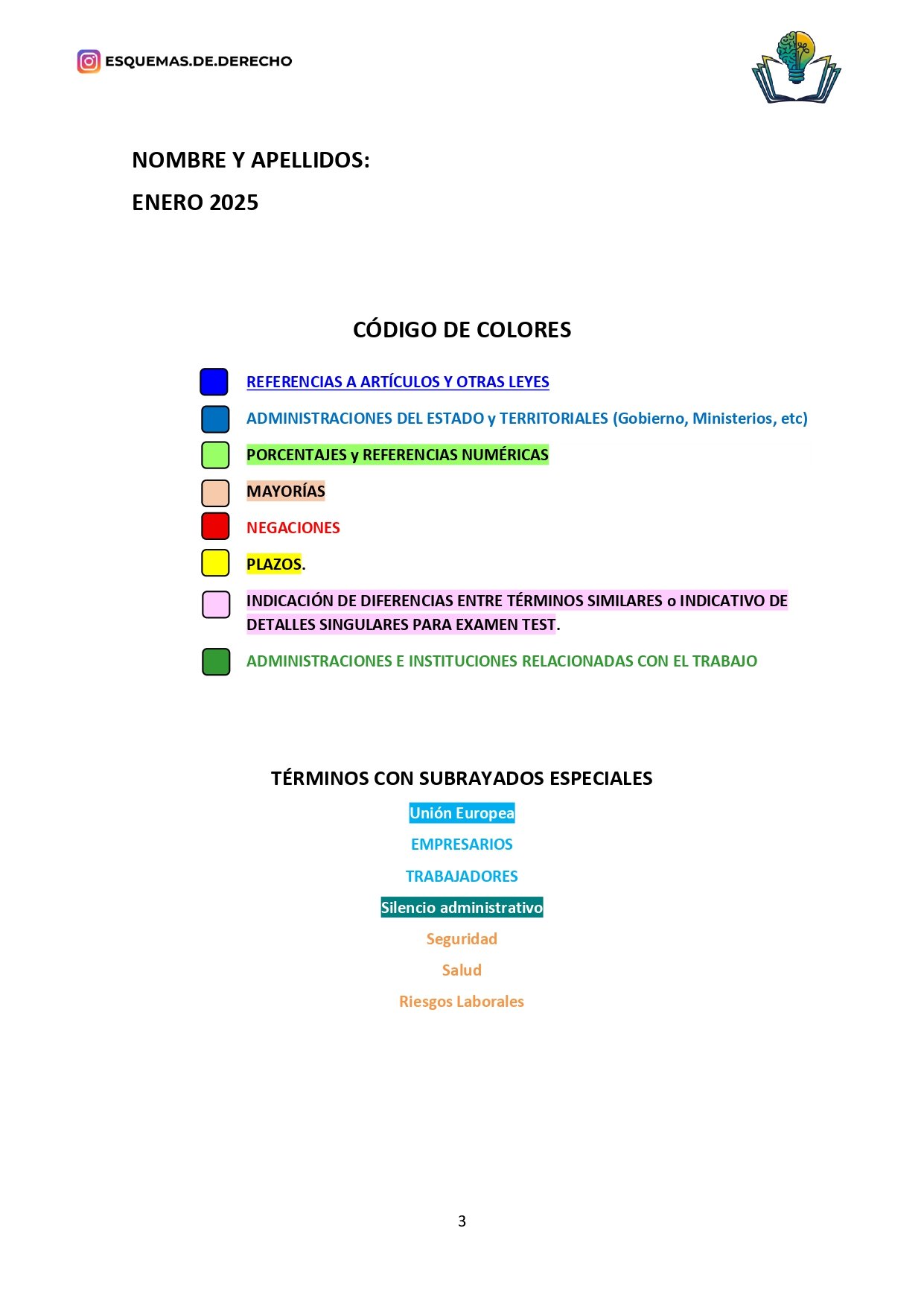 ✅ Subrayado con jerarquía de colores, que destaca conceptos clave, plazos, obligaciones y responsabilidades