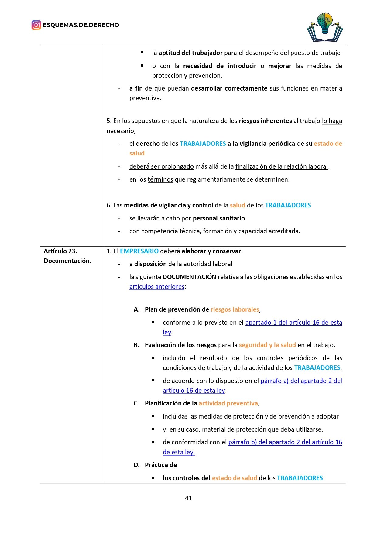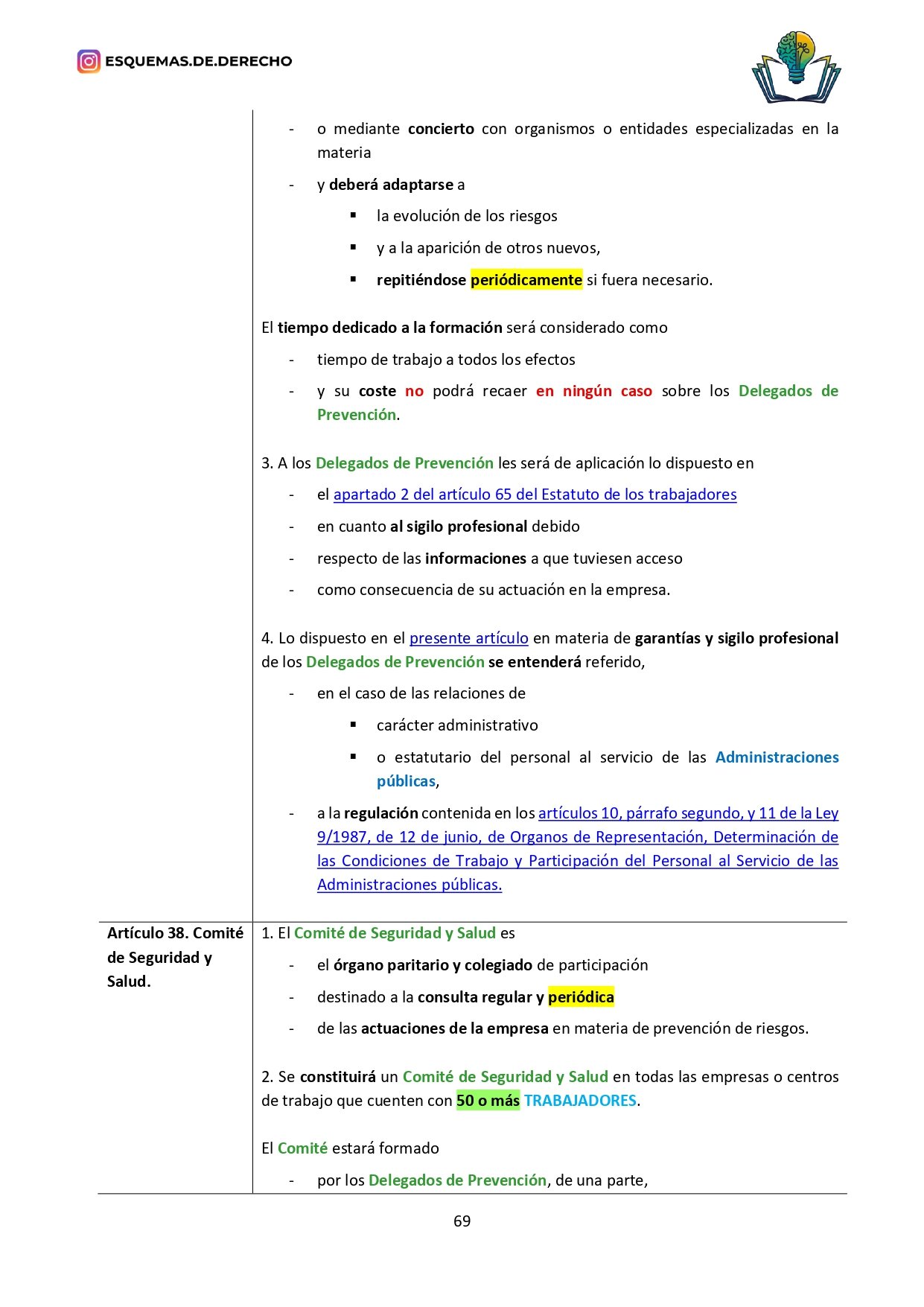 - Revisión Rápida: Facilita las sesiones de repaso, permitiendo una revisión rápida de los temas más importantes antes de los exámenes, o de los datos que deben retenerse a corto plazo, como los plazos o mayorías, sólo tendrás que buscar en la ley los subrayados de color amarillo, naranja o verde.