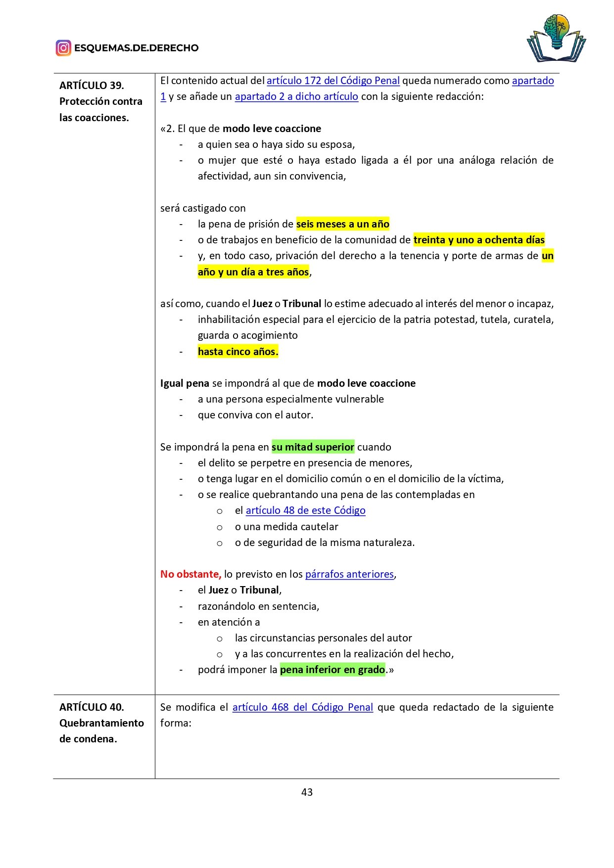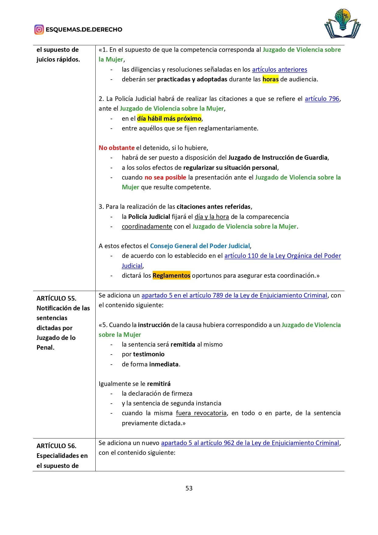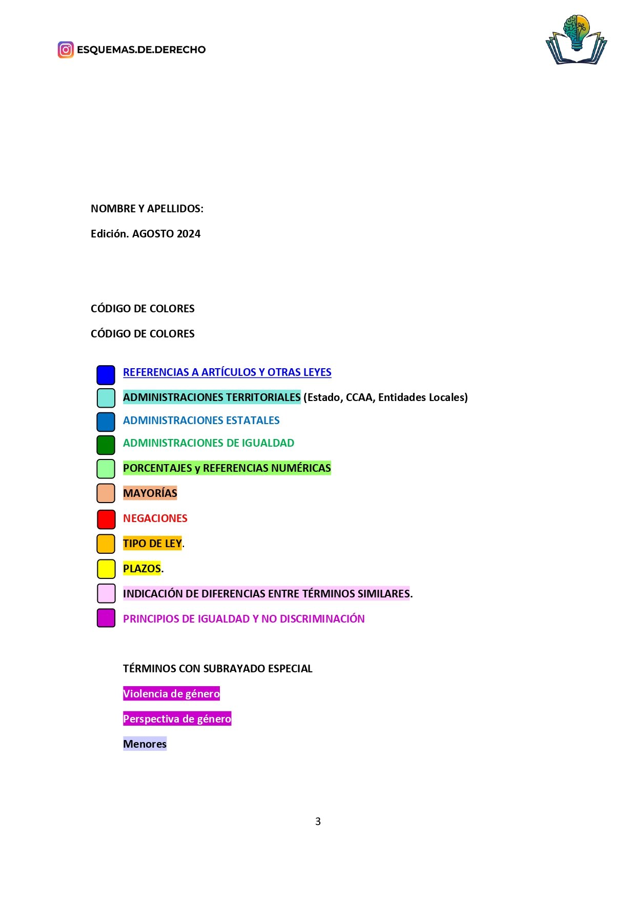 - Revisión Rápida: Facilita las sesiones de repaso, permitiendo una revisión rápida de los temas más importantes antes de los exámenes, o de los datos que deben retenerse a corto plazo, como los plazos o mayorías, sólo tendrás que buscar en la ley los subrayados de color amarillo, naranja o verde.