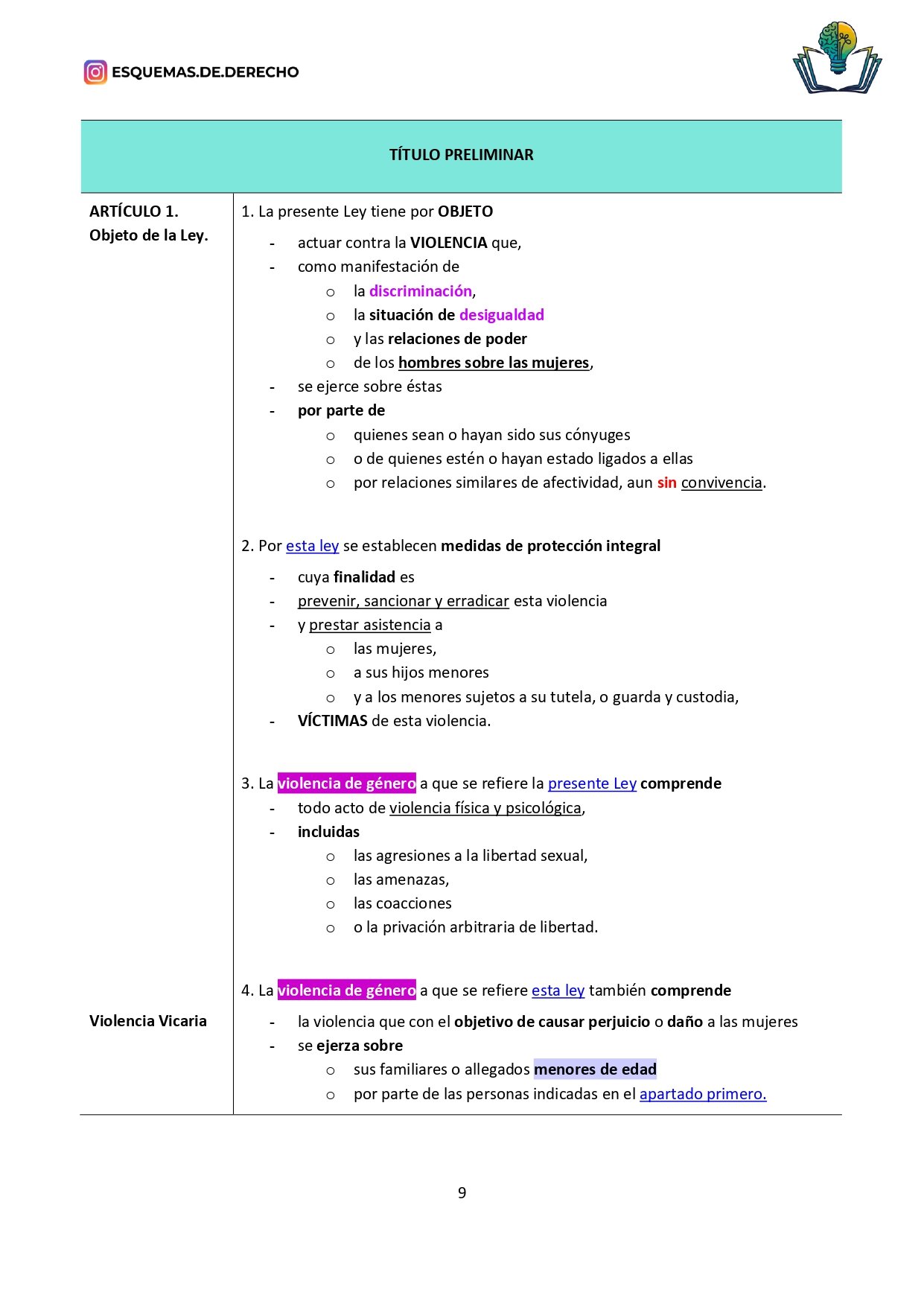 Ley de Medidas de Protección Integral contra la Violencia de Género de Esquemas de Derecho, es una ley preparada específicamente para opositores y estudiantes, y es desarrollada por profesores de oposiciones.