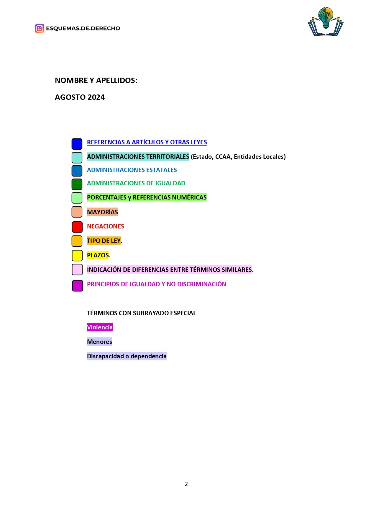 - Revisión Rápida: Facilita las sesiones de repaso, permitiendo una revisión rápida de los temas más importantes antes de los exámenes, o de los datos que deben retenerse a corto plazo, como los plazos o mayorías, sólo tendrás que buscar en la ley los subrayados de color amarillo, naranja o verde.