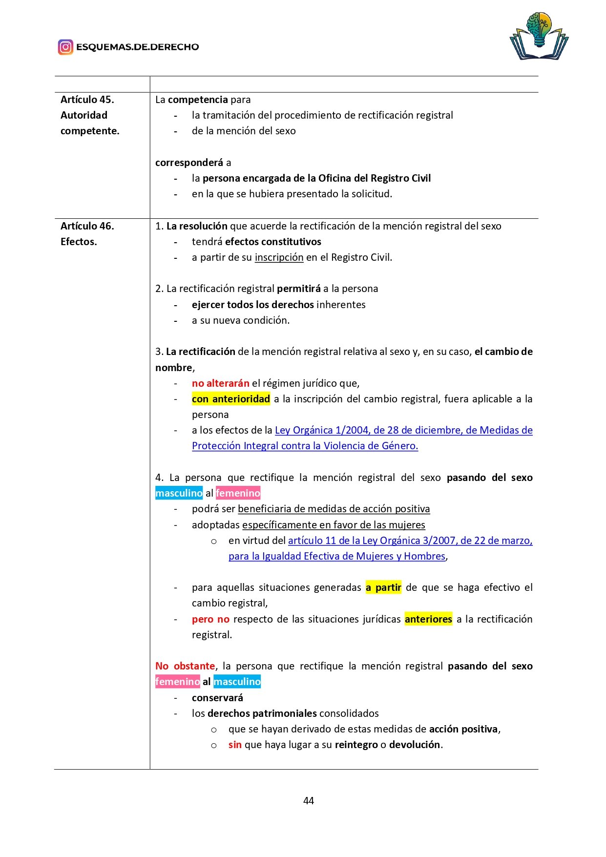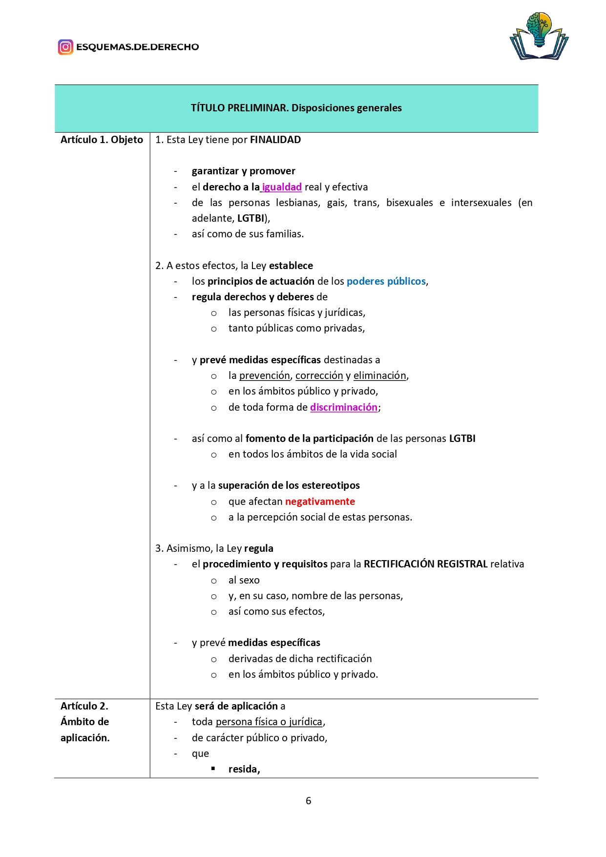 Ley Para la igualdad real y efectiva de personas trans de Esquemas de Derecho, es una ley preparada específicamente para opositores y estudiantes, y es desarrollada por profesores de oposiciones.