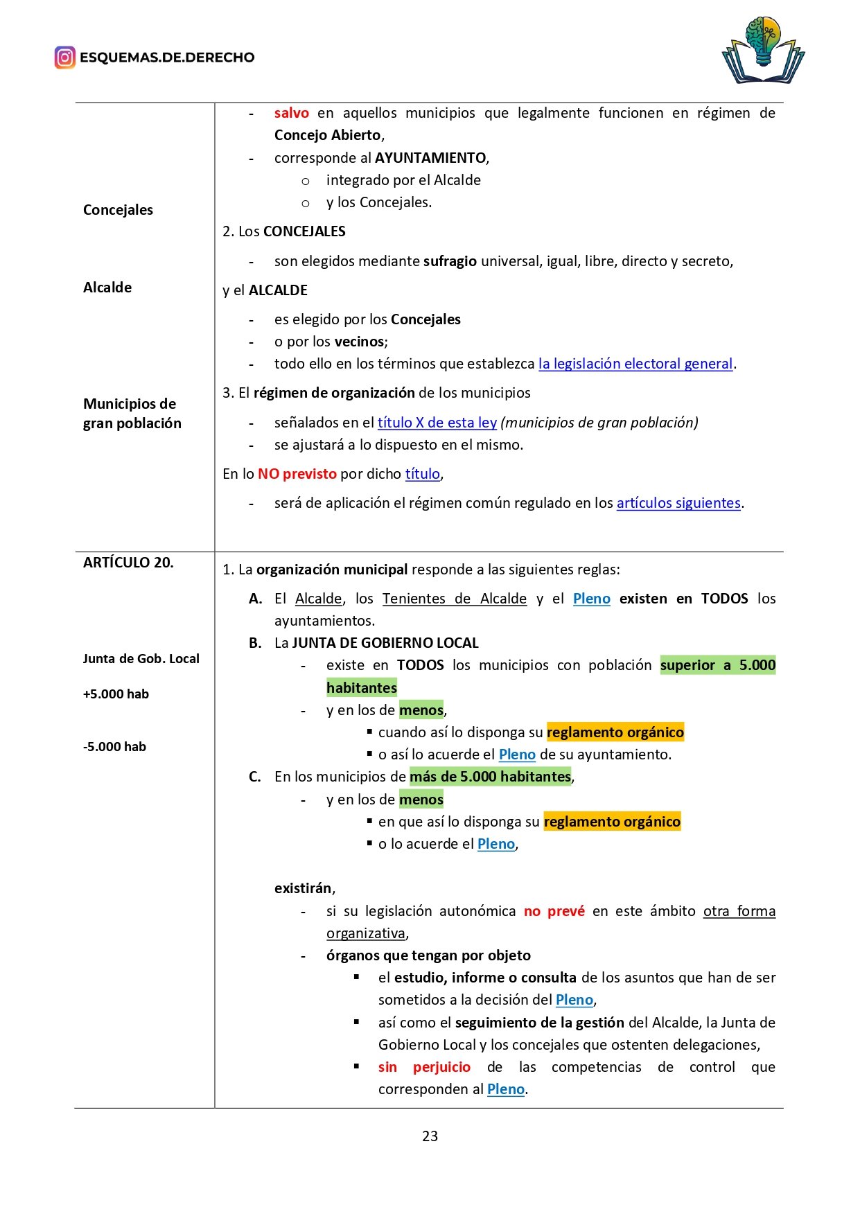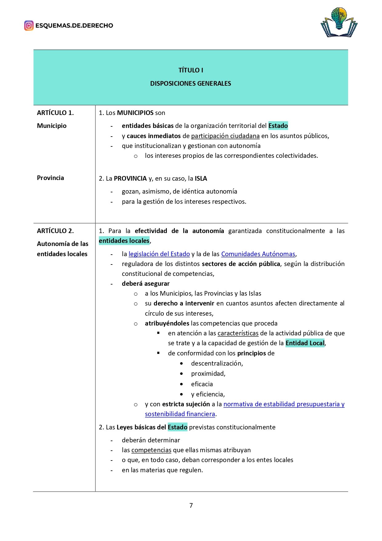 Ley Reguladora de las Bases del Régimen Local de Esquemas de Derecho, es una ley preparada específicamente para opositores y estudiantes, y es desarrollada por profesores de oposiciones.
