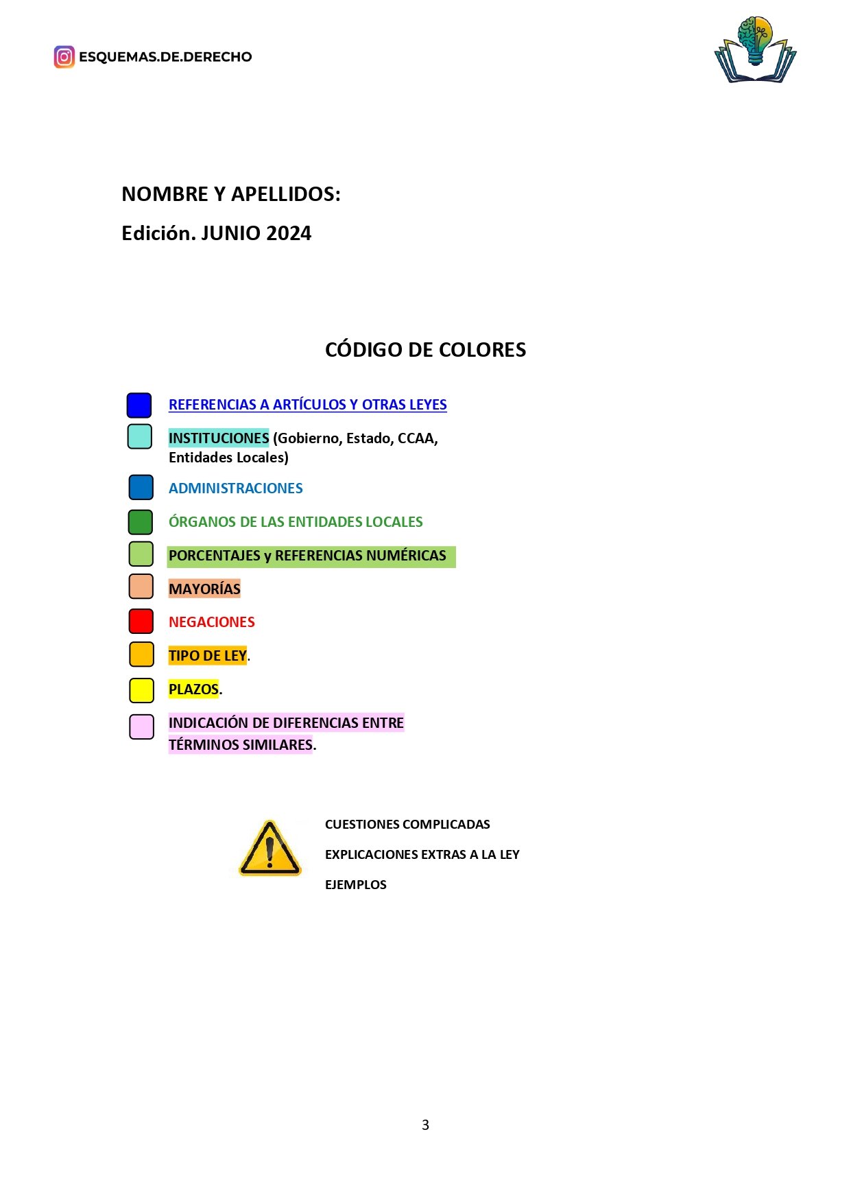 - Revisión Rápida: Facilita las sesiones de repaso, permitiendo una revisión rápida de los temas más importantes antes de los exámenes, o de los datos que deben retenerse a corto plazo, como los plazos o mayorías, sólo tendrás que buscar en la ley los subrayados de color amarillo, naranja o verde.
